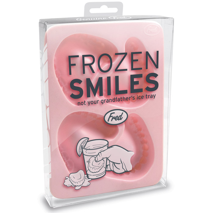 Zahnprotesen sind ab jetzt nicht mehr nur für die Großeltern! Einfach ein paar Frozen Smiles einfrieren und auf der nächsten Party grinsen dich und deine Partygäste die freundlichen Beißerchen an! Findest Du nicht auch die Frozen Smiles geben jedem Getränk ein bißchen mehr Biss? Die Gebiss-Eiswürfelform besteht aus elastischem Gummi so, dass sich die fertigen Gebiss-Eiswürfel einfach herauslösen lassen. Die Gebiss-Eiswürfel haben annährend die Größe eines echten Gebisses.