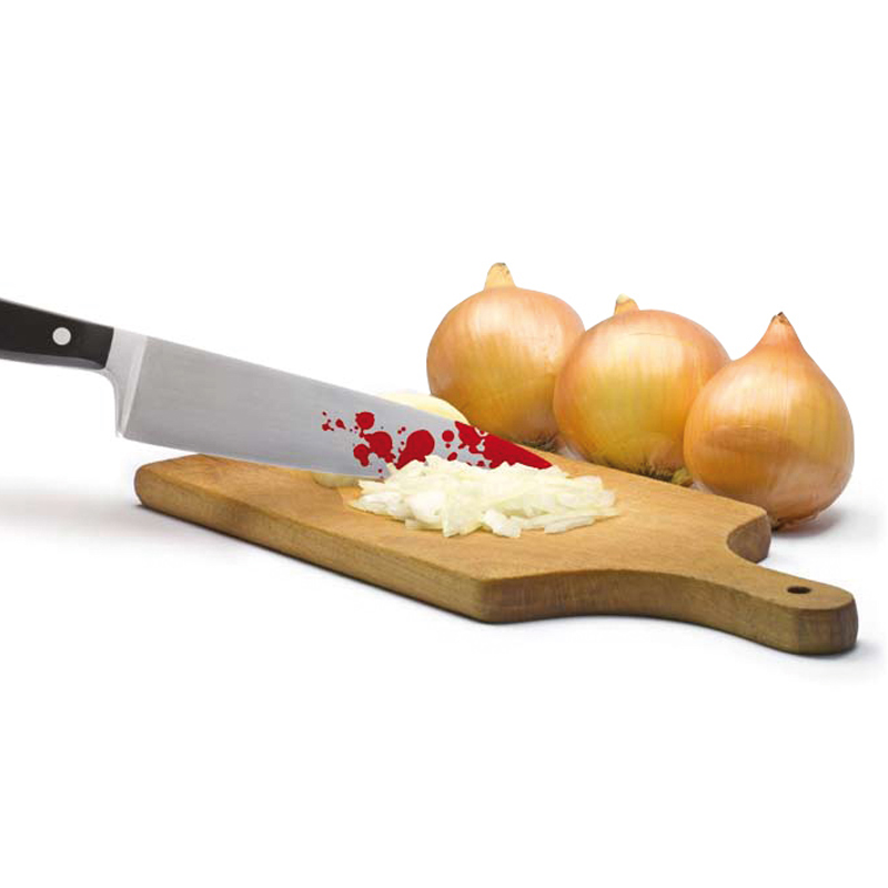 Sie suchen nach ein wenig mehr Spannung und Dramatik beim Kochen? Dann haben wir hier das perfekte Küchenmesser für Sie! Das Messer mit 20 cm Edelstahlklinge für alle Hobby-Forensiker und Krimi-Fans in blutigem Design, das direkt von einem Tatort stammen könnte.