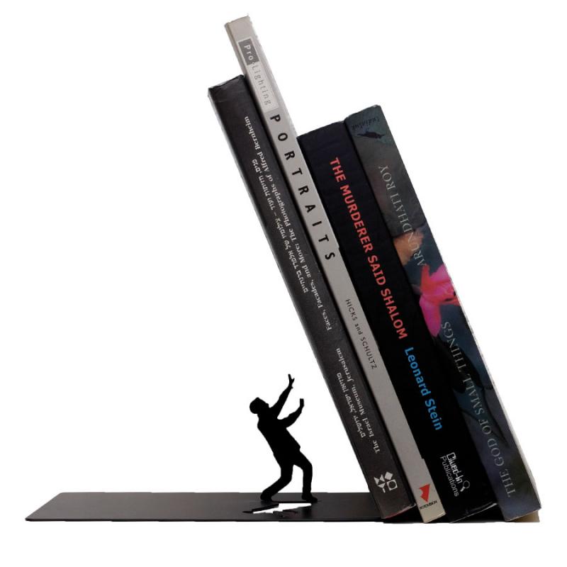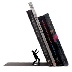 Sie befürchten es wird für den kleinen Mann neben den Büchern kein gutes Ende nehmen? Keine Sorge: Die Buchstütze Falling Bookend sorgt zwar für eine dramatische Szene auf Ihrem Bücherregal, hat Ihre Bücher aber fest im Griff!