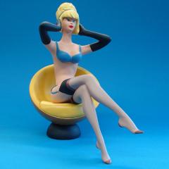 Eine Skulptur des spanischen Künstlers Stephan Saint Emett. Er studierte an der renommierten ESAG Penninghen Kunstakademie Literatur, Architektur und Kunst. Nachdem er einen mehrfach ausgezeichneten Kurzfilm machte, hatte er die Idee dreidimensionale Figuren, nach Vorlage seiner Filmcharaktere zu erschaffen. Seine Leidenschaft für Frauen inspirierte ihn zusätzlich und so entstand die beieindruckende Kollektion Pin-up & Design, deren Figuren eines gemeinsam haben - sie sitzen alle in eigens entworfenen Design-Stühlen. Und eines ist klar, die drei Damen die nichts hören, nichts sehen, nichts sagen sind doch deutlich attraktiver als die drei Affen, von denen diese Redensart eigentlich herrührt.