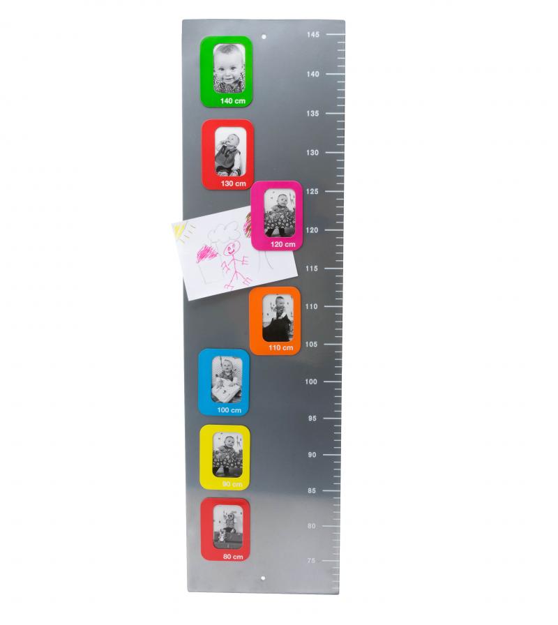 Die Zeit in der Kinder groß werden geht oft wie im Fluge vorbei. Dieser Bilderrahmen sorgt für schöne Erinnerungen. Mit Hilfe des seitlichen Größenmaßstabes und den magnetischen Fotohaltern lassen sich die Bilder jeweils dem Alter bzw. der Größe des Kindes zuordnen.