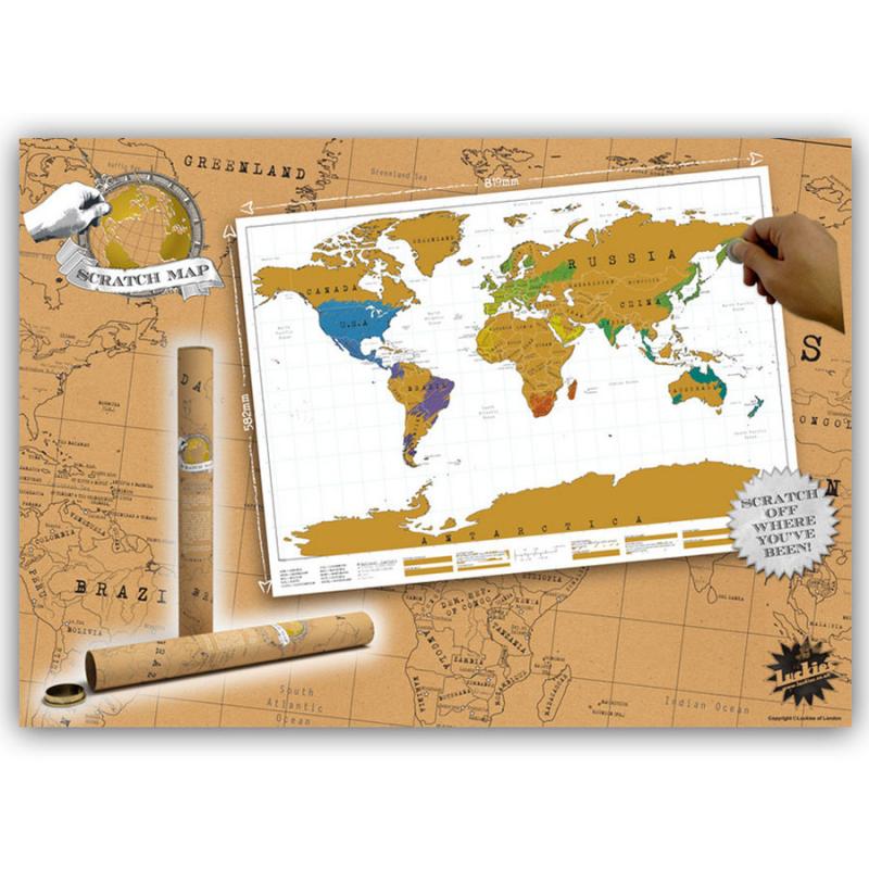 ...und diejenigen, die es noch werden wollen. Scratch Map - das ist das Ergebnis einer pfiffigen Idee, umgewandelt in ein geniales Produkt. Ein großes Poster mit einer Weltkarte, überzogen mit einer goldenen Folienschicht, ähnlich der Schicht auf Rubbel-Losen. So kann man sich seine eigene, ganz individuelle Weltkarte erschaffen, indem man die Länder aufrubbelt, die man schon besucht hat. Enthülle eine ganz neue Welt mit farbigen Ländern und geografischen Details und schaffe dir eine einzigartige persönliche Weltkarte!