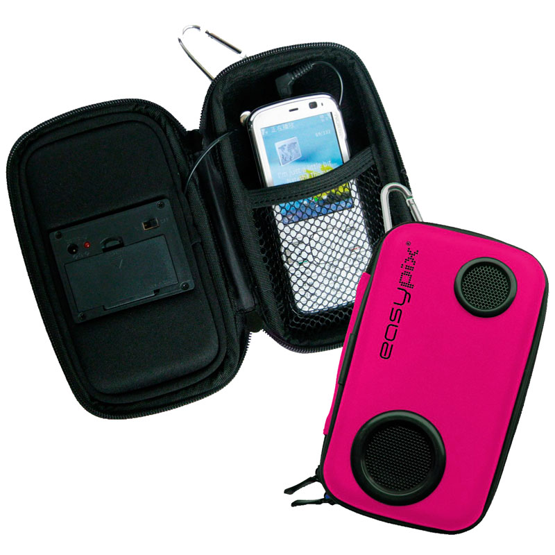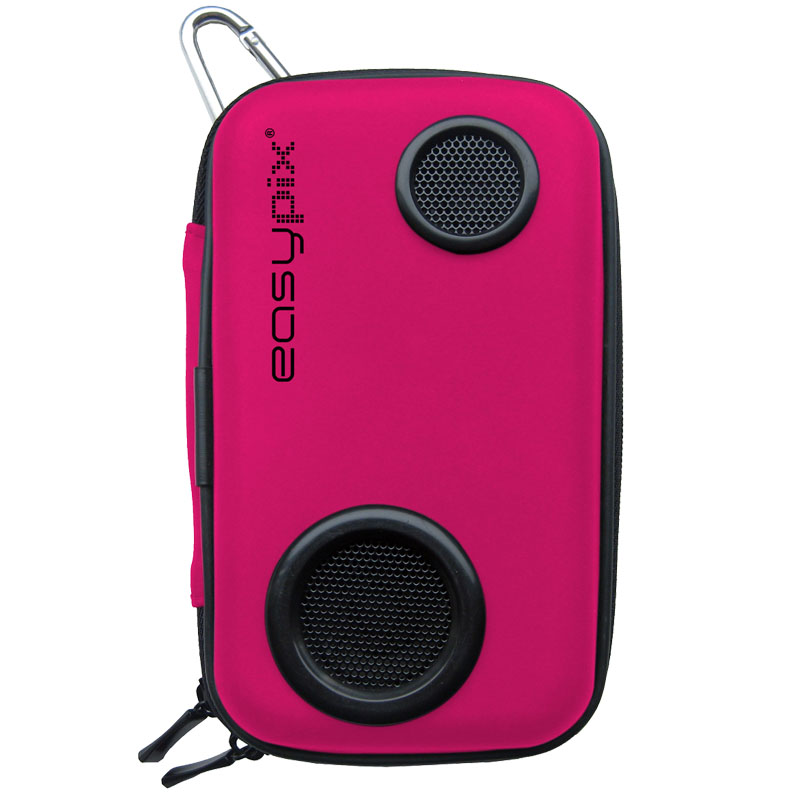 Die Soundbox schütz Ihr Mobiltelefon oder den MP3-Player sicher vor Spritzwasser, Kratzern und Beulen. Dank der beiden Lautsprecher in der Oberschale und der eigenen Stromversorgung, können Sie Ihre Songs auch Unterwegs mit anderen teilen und Musik über mehrere Stunden gemeinsam genießen.