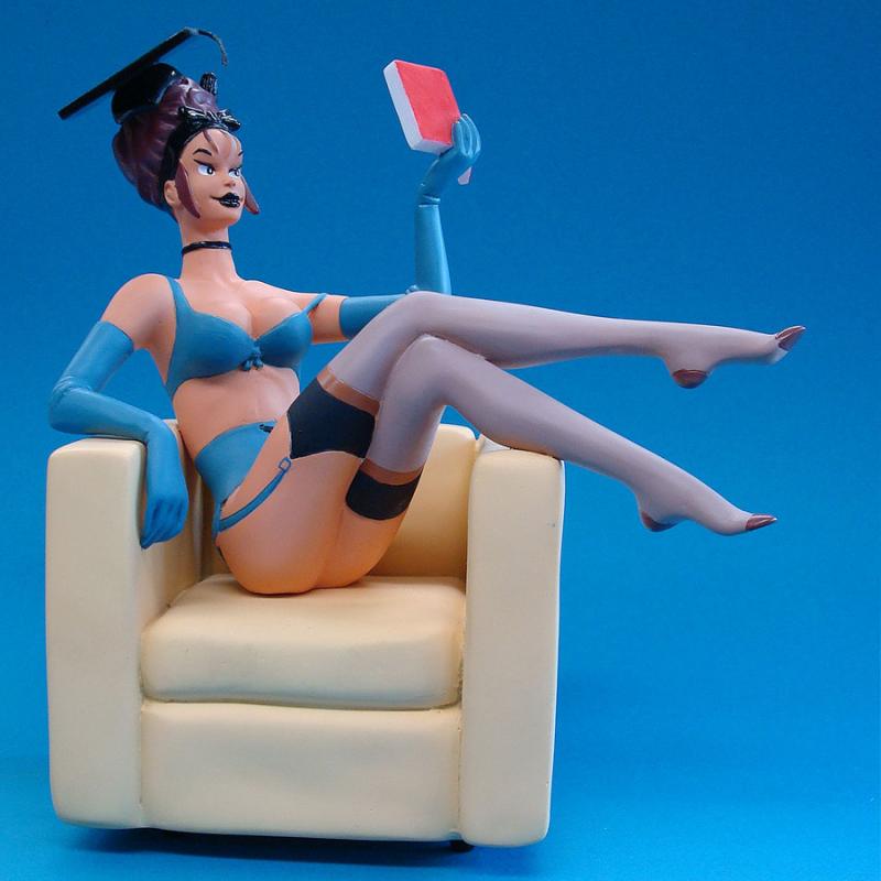 Eine Skulptur des spanischen Künstlers Stephan Saint Emett. Er studierte an der renommierten ESAG Penninghen Kunstakademie Literatur, Architektur und Kunst. Nachdem er einen mehrfach ausgezeichneten Kurzfilm machte, hatte er die Idee dreidimensionale Figuren, nach Vorlage seiner Filmcharaktere zu erschaffen. Seine Leidenschaft für Frauen inspirierte ihn zusätzlich und so entstand die beieindruckende Kollektion Pin-up & Design, deren Figuren eines gemeinsam haben - sie sitzen alle in eigens entworfenen Design-Stühlen.
