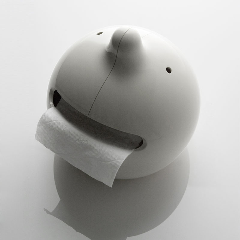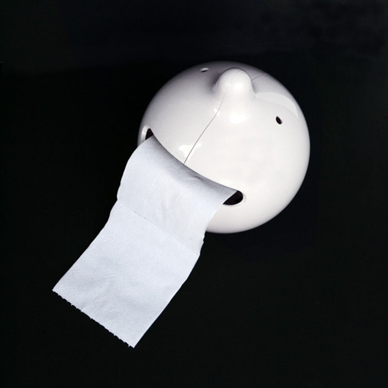 Na wer starrt denn da so an die Decke? Es ist Mr. P der überaus fleißige Toilettenpapierspender! Er nimmt eine ganze Toilettenpapierrolle in sich auf und lässt sie sich bei Bedarf wieder aus dem Mund ziehen. "Sieht ein bißchen nach überdimensionaler Zunge aus" Origineller lässt sich Klopapier wohl kaum aufbewahren!