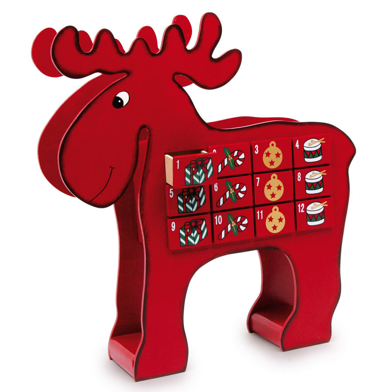 Elch Adventskalender aus Holz mit Schubladen
