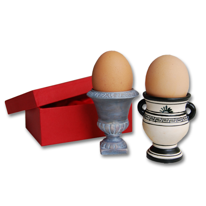 Holen Sie sich ein Stück griechische Antike auf den Frühstückstisch. Zwei unterschiedliche Amphoren-Eierbecher aus Porzellan, in einer hochwertigen Geschenkbox.