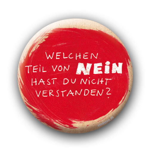 Bestimmt nicht zugeknöpft - eher aussagekräftig extrovertiert macht der Button 2.0 mit seinem XXL-Durchmesser von 11 cm aus jeder Jutetasche einen "It-Bag". Zum Zwischenparken läßt sich der Button auch als Magnet nutzen.