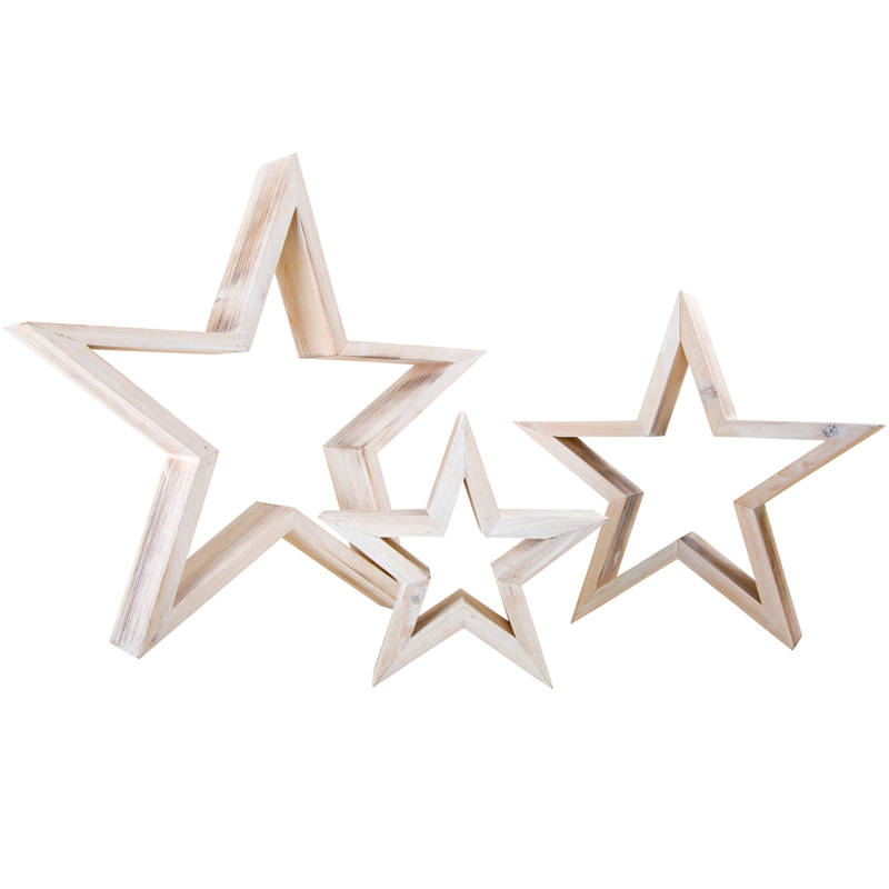 3-er Set Deko-Holz-Sterne