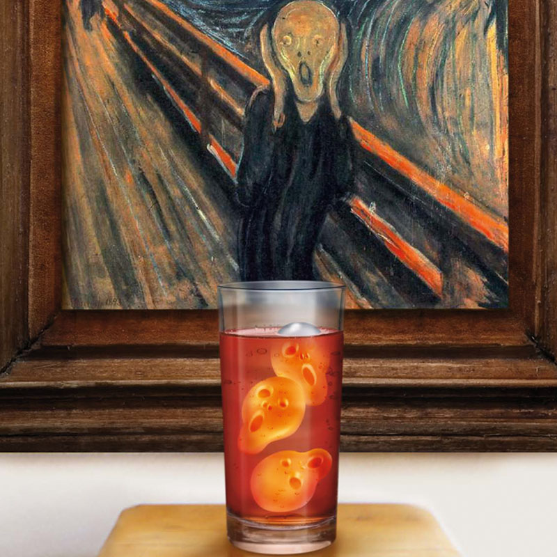 Schreiende Gesichter im Getränkeglas versinken lassen. Produzieren Sie jede Menge Ice Screams mit der Eiswürfelform aus Silikon.