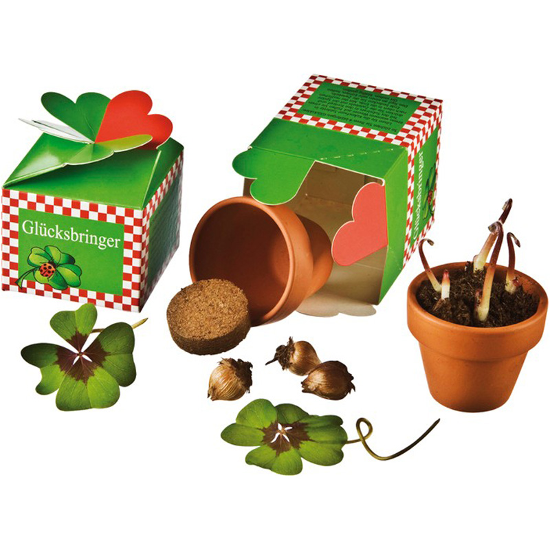 | Lieferumfang | 1 Schachtel mit Kleeblattsamen, Quell-Tab, Topf & Anleitung |