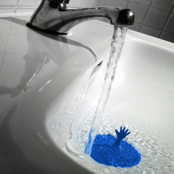 Wer greift denn da so hilfesuchend aus dem Abfluss nach Ihnen!? Der Help! - Abflussstöpsel ersetzt die langweiligen schwarzen Stopfen von Badewanne und Waschbecken und sorgt für ein Plus an Spaß im Bad.