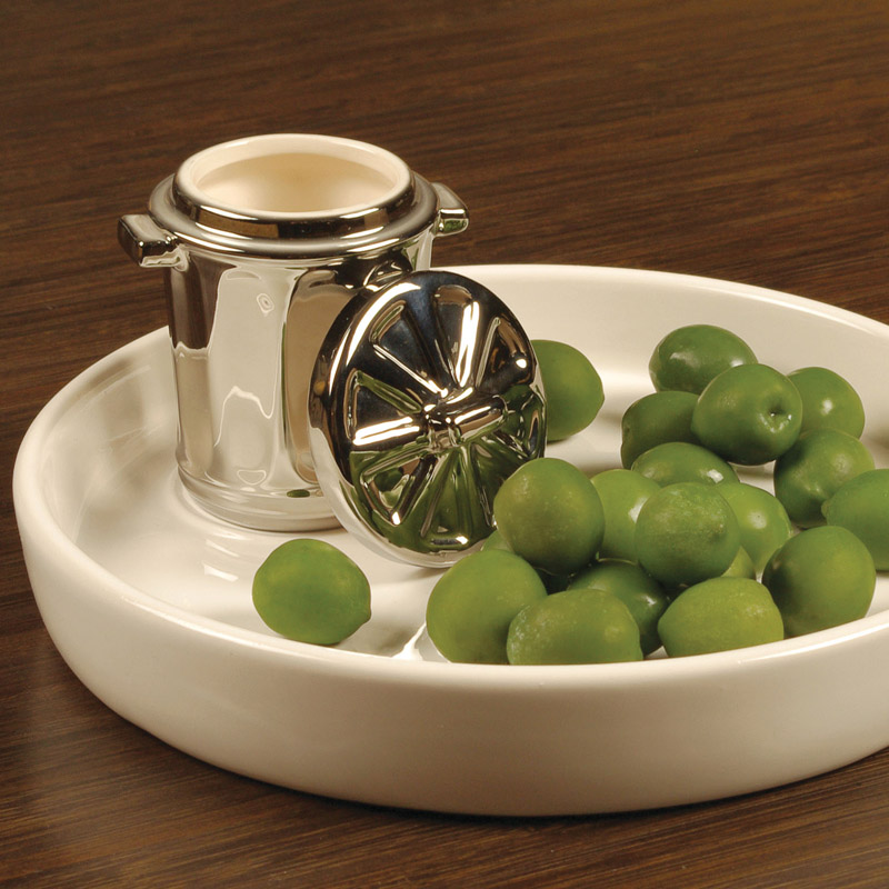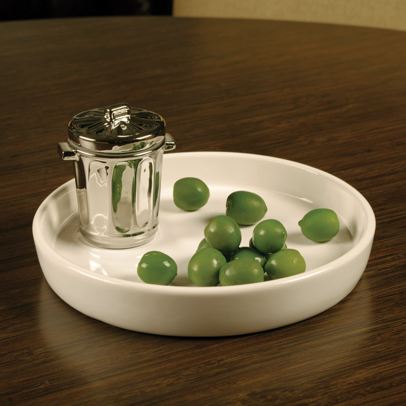 Ein wahrhaft schickes Plätzchen für die kleinen Oliven ist diese stylische Olivenschale aus Keramik. Zusammen mit der verchromten Keramik-Mülltonne für die Kerne ist dieses Set bestens geeignet um Tapas stilvoll anzubieten.
