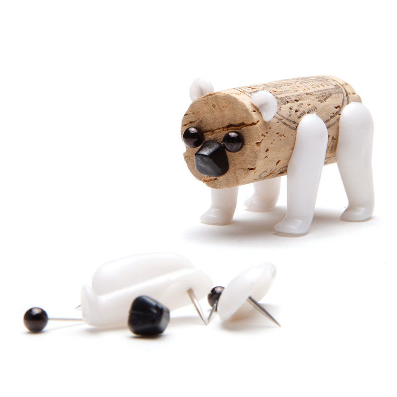 Ein Päckchen "Corkers" für ein witziges Korkentierchen am Flaschenhals einer Weinflasche macht aus einer einfachen Flasche Wein gleich ein ganz besonderes, individuelles und witziges Geschenk. Das Päckchen lässt sich ganz einfach um den Weinflaschenhals hängen und enthält alle Körperteile um aus einem einfachen Weinkorken einen Bären zu basteln.