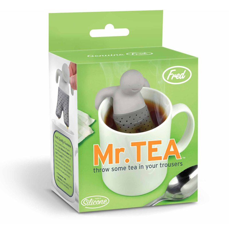 Mr. Tea, das ist ein lustiges Teesieb und der perfekte Partner für alle Teefreunde. Man fülle einfach das Silikonhöschen mit ein wenig Tee und lasse Mr. Tea am Tassenrand ein entspanntes Tee-Bad nehmen - fertig ist der perfekte Tee!