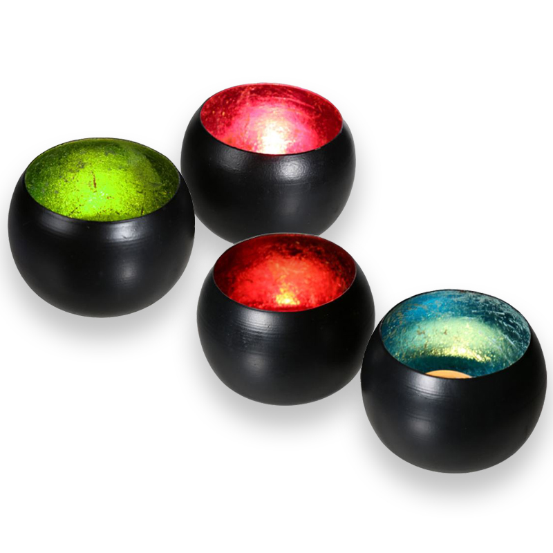 Die dekorativ schimmernden Windlicht-Kugeln können in der Wohnung, auf dem Balkon oder der Terrasse platziert werden. Die metallisch reflektierende Beschichtung auf der Innenseite sorgt dafür, dass das Kerzenlicht eindrucksvoll gebrochen wird und taucht so seine Umgebung in eine stimmungsvolle Atmosphäre.